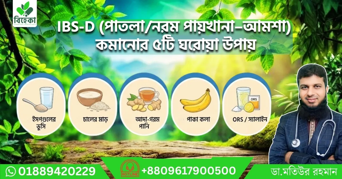 • IBS-D (পাতলা/নরম পায়খানা–আমশা) কমানোর ৫টি ঘরোয়া উপায়